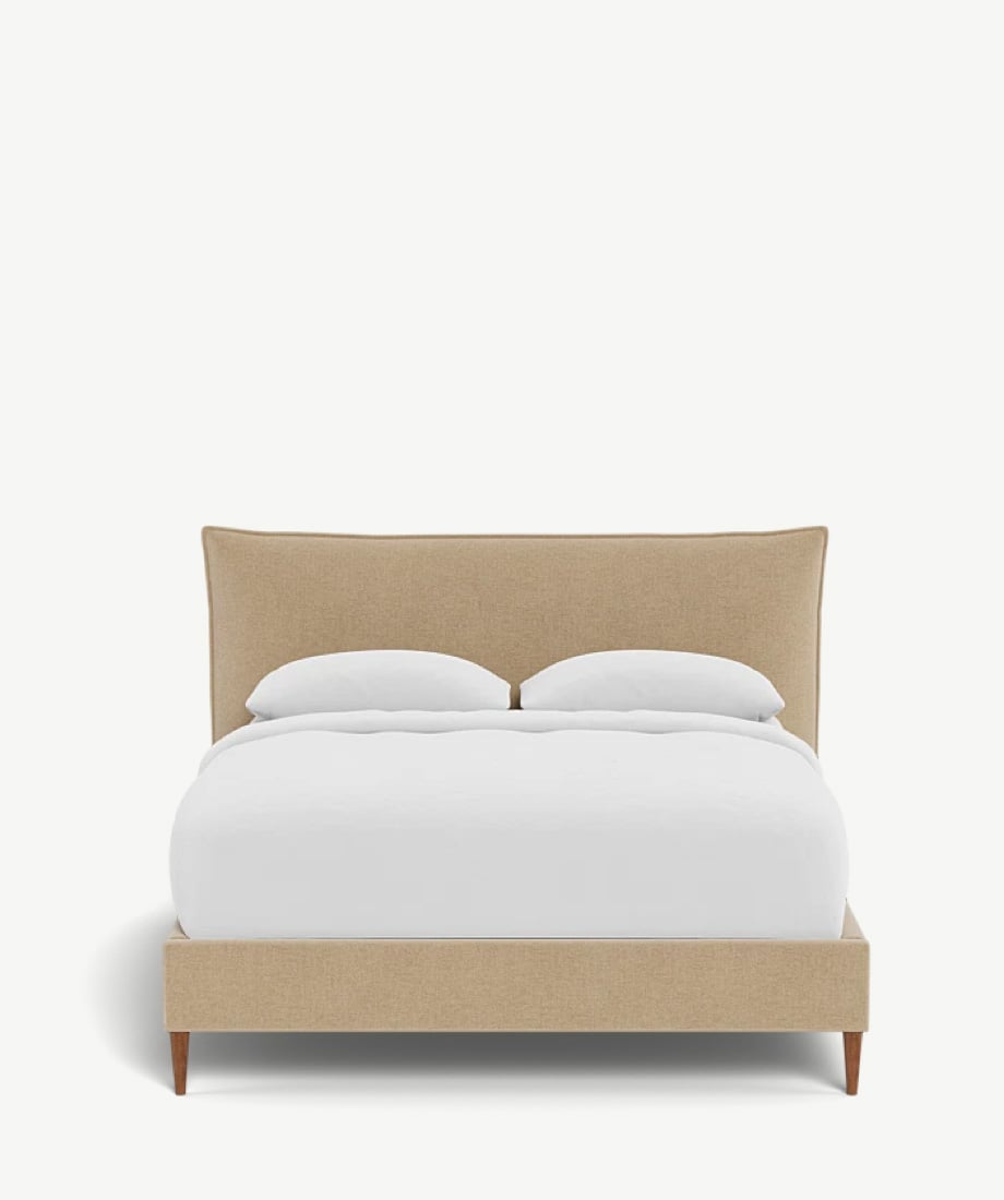 - Upholstered in chenille-effect fabric.